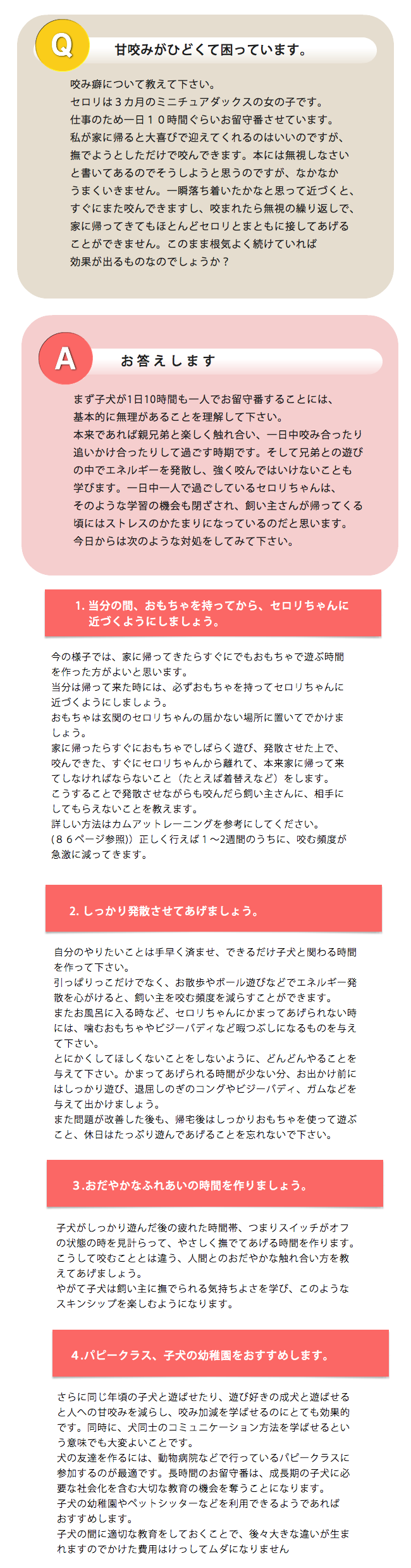 | Q.咬みついた時、怒ると吠え返してきます。 |